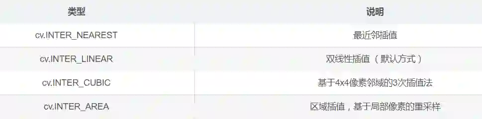 #dst为输出图像,类型与原图像相同dst = cv2.resize(src, dsize[, dst[, fx[, fy[, interpolation]]]])