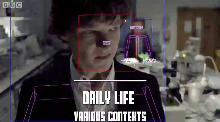 新方法让AI真正看懂剧里的卷福手在举杯(hold),右边的人在伸手掏东西(reach for):