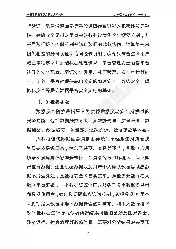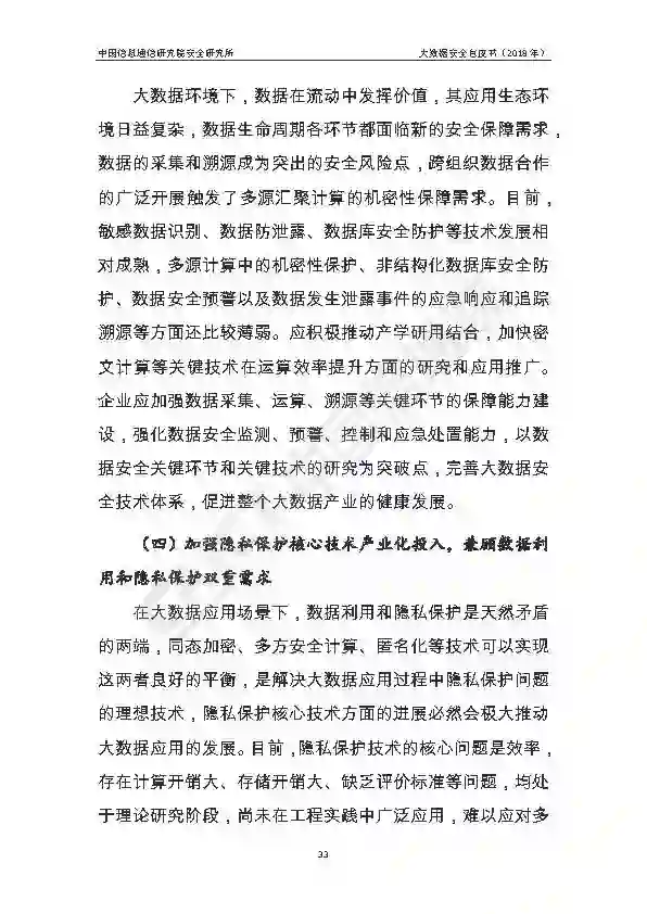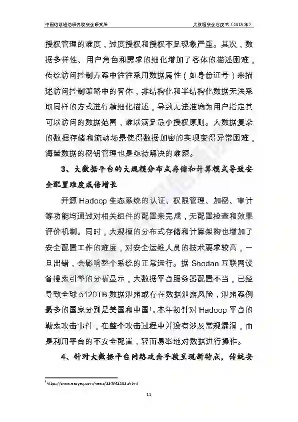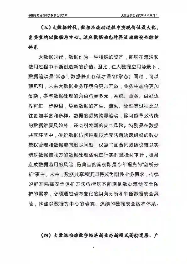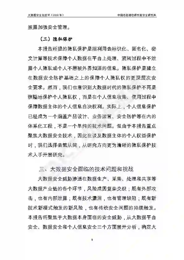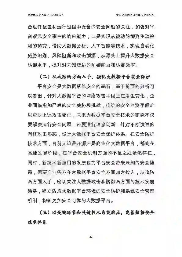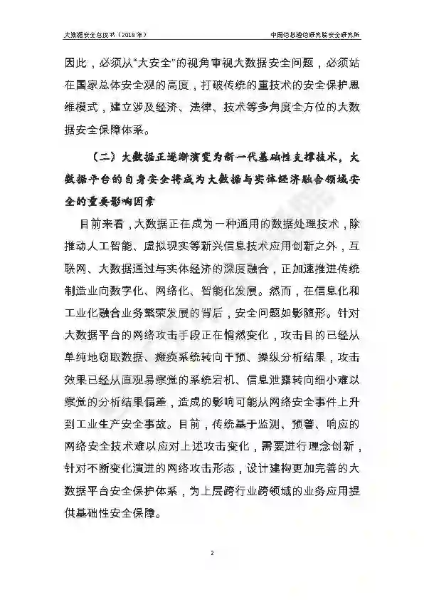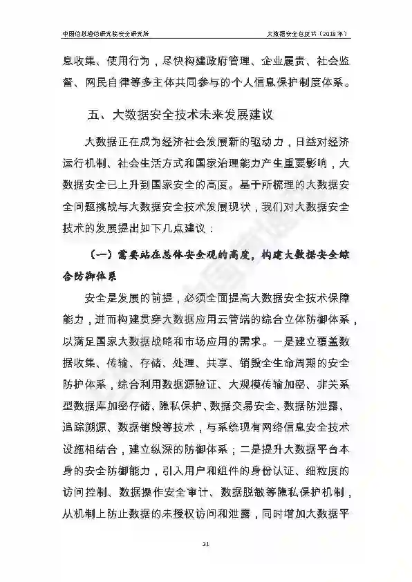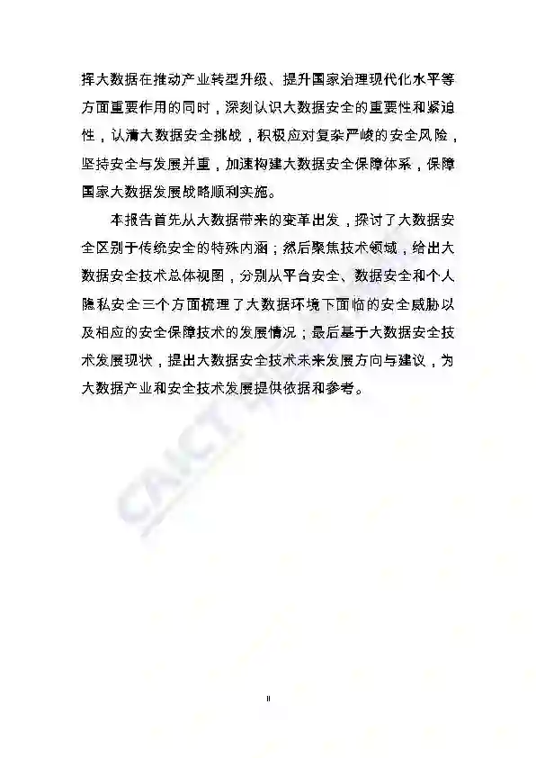 本报告探讨了大数据安全的特殊内涵,梳理了发展情况,并基于现状提出了未来发展方向与建议。
