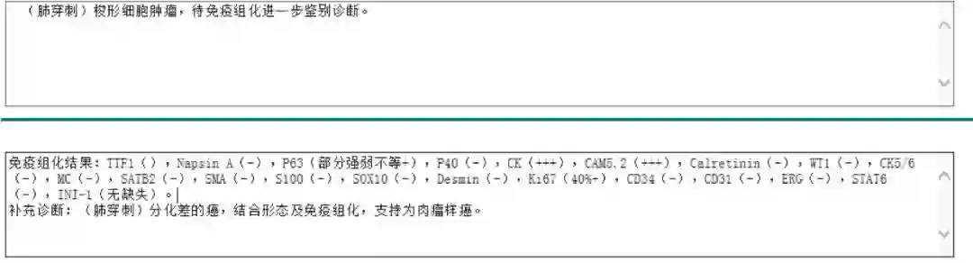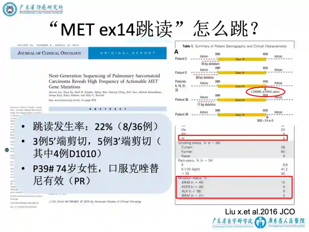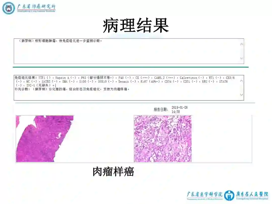 2)右上肺肉瘤样癌CT4N2M1a(胸膜) IVA期(第八版),MET 14exon 移码突变。