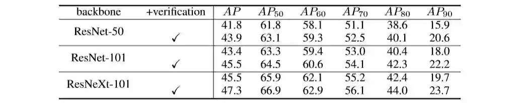 最后,由于本篇论文中提出的方法并不受到具体检测框架的限制,因此可以轻易地拓展到其他物体检测器上,同时也适用于其他视觉任务如实例分割。