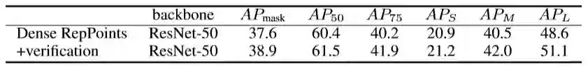 表5:在 COCO test-dev 集合上,验证模块用于 DenseRepPoints 方法的实验结果