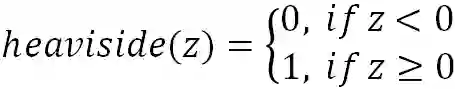 感知器中最常用的阶跃函数是Heaviside阶跃函数 ( 见公式1 )。