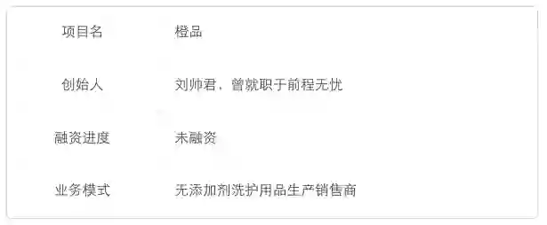 “橙品”是一款主打无添加剂的洗护用品品牌。该品牌共有洗洁精、果蔬净、洗衣液、内衣液四款产品。“橙品”中不含香精、荧光增白剂、防腐剂、色素等成分,创始人刘帅君从巴西采购纯度97%的橙油(由橙皮冷榨获得)作为原料,使产品散发出天然橙皮香气。