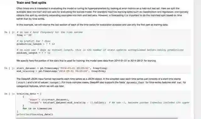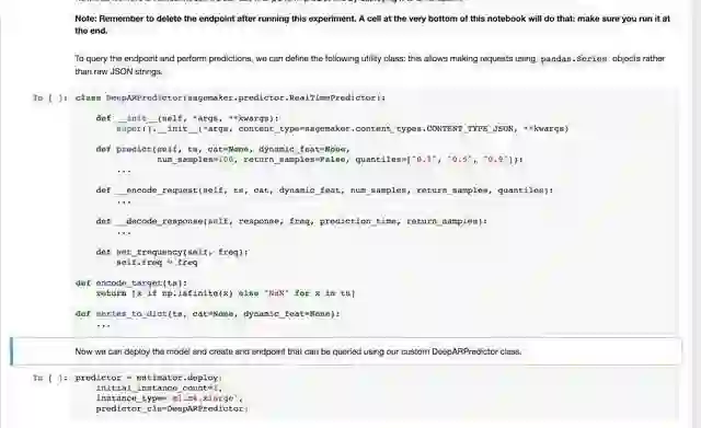 SageMaker 也提供了数个 DeepAR 相关示例,可以在初期仿照示例笔记本处理自己的业务数据并生成模型,降低学习曲线。