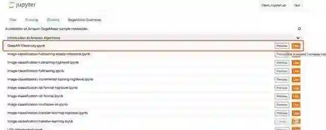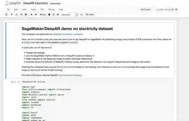 在 SageMaker 上启用一个笔记本实例, DeepAR的示例笔记本在 Jupyter 的示例中可以找到: