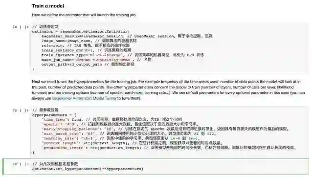 DeepAR 作为 SageMaker 内建的算法,可以通过数行代码调用,就可以直接开始模型训练。