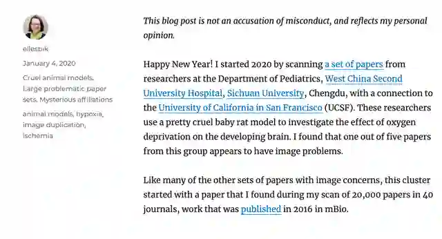 2016年起,Bik甚至辞掉了斯坦福大学医学院微生物学和免疫学系工作,专职调查各类论文图像异常问题以及可能存在的学术不端。