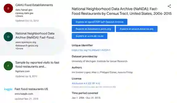对于不同的学科来说,人们进行的搜索是完全不同的:科学家会寻找研究目标(如搜索催产素),学生会搜索包含自己作业主题的关键字,业务分析师和数据科学家会寻找移动 app 或快餐店销售的数据……今天,所有这些内容都有数据集。