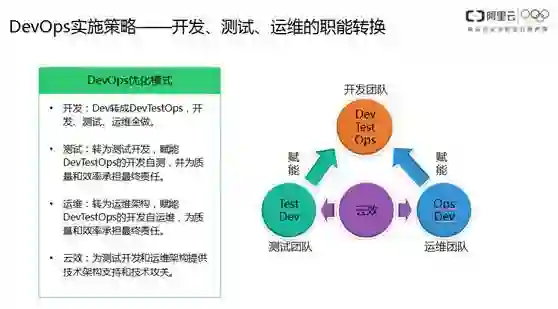 为了解决DevOps落地问题,云效跟开发、测试、运维团队一起,为开发服务,让他们自运维、自测,提升效率。