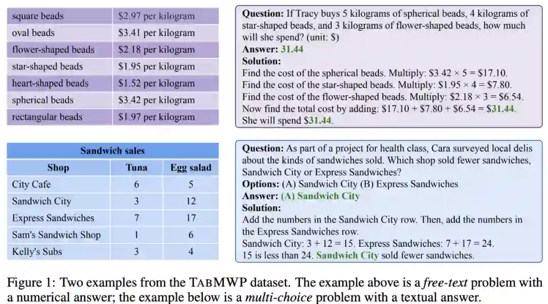 摘要:来自 UCLA 和艾伦人工智能研究院(AI2) 的研究人员推出了 Tabular Math Word Problems (TabMWP) ,这是一个包含了 38,431 个开放领域问题的数据集,需要同时在文本和表格数据上进行数学推理得到正确答案。TabMWP 中的每个问题都与一个上下文相关联,这个上下文包含图片、文本或结构化格式的表格。