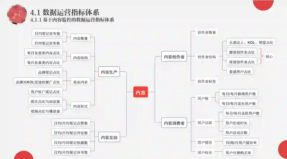 而且在数据运营部分,小黎也以思维导图的形式,细分出了指标体系,这一点也正好契合了小黎提出的“精细化运营”的策略。