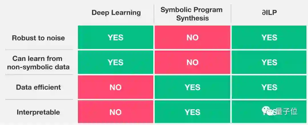 神经网络的强大功能有目共睹,但它往往需要大量与目标测试领域数据分布相似的训练数据;而用于符号领域的归纳逻辑编程只需少量数据,却无法对抗噪声,适用领域也很狭窄。