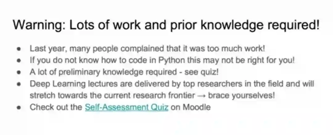 当然,这样一门进阶课程也是有一定门槛的。授课者提到,去年就有很多人抱怨课程负担太重。选这门课程的人需要懂 Python,还要有很多其他知识储备。另外,由于授课者都是活跃在学界的顶级研究者,课程会直接延伸到当前的研究前沿。