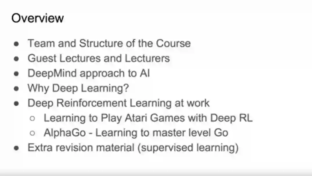 该课程最初在伦敦大学学院(UCL)进行,为方便在线观看进行了录像。多位 DeepMind 的研究人员、UCL 教师参与了课程的设计。