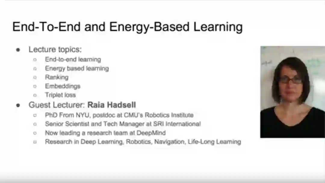 课程中的深度学习部分首先介绍了神经网络及使用 TensorFlow 的监督学习,接下来探讨了卷积神经网络、循环神经网络、端到端及基于能量的学习、优化方法、无监督学习、注意力及记忆。涉及的应用领域包括目标识别和自然语言处理。