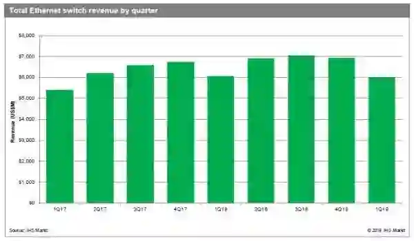 1. 2018年第一季度,全球以太网交换机收入总计61亿美元,相比去年同期增长了12%。