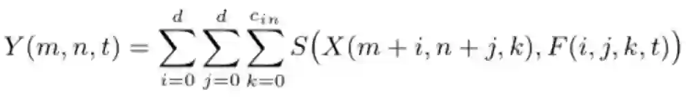 对于CNN中的卷积运算,假定输入X,filter表示为F,卷积后输出的是二者的相似性度量,表述如下面公式: