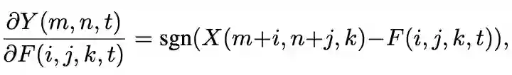 但是在AdderNets中,Y相对于滤波器F的偏导数是: