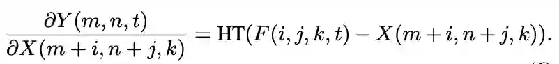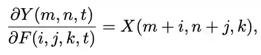 神经网络利用反向传播来计算滤波器的梯度和随机梯度下降来更新参数。在CNN中,输出特征Y相对于滤波器F的偏导数被计算为: