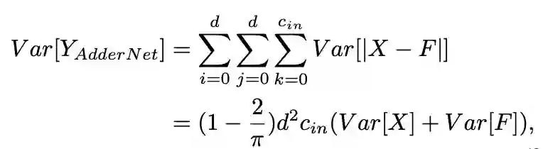 相反,对于AdderNets,输出的方差可以近似为: