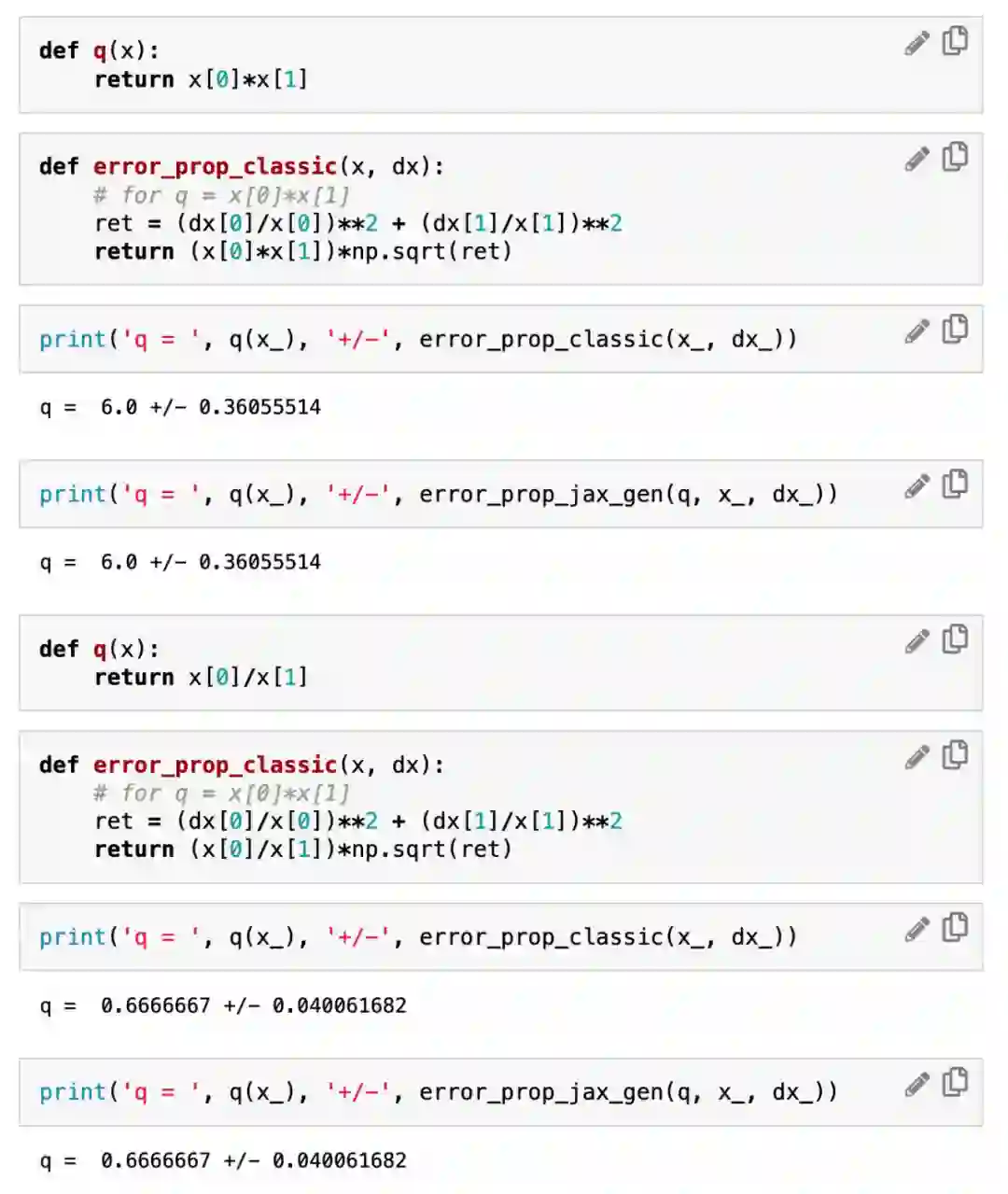 上图所示,通过误差传播公式计算出来的值与 JAX 计算出来的是一致地。