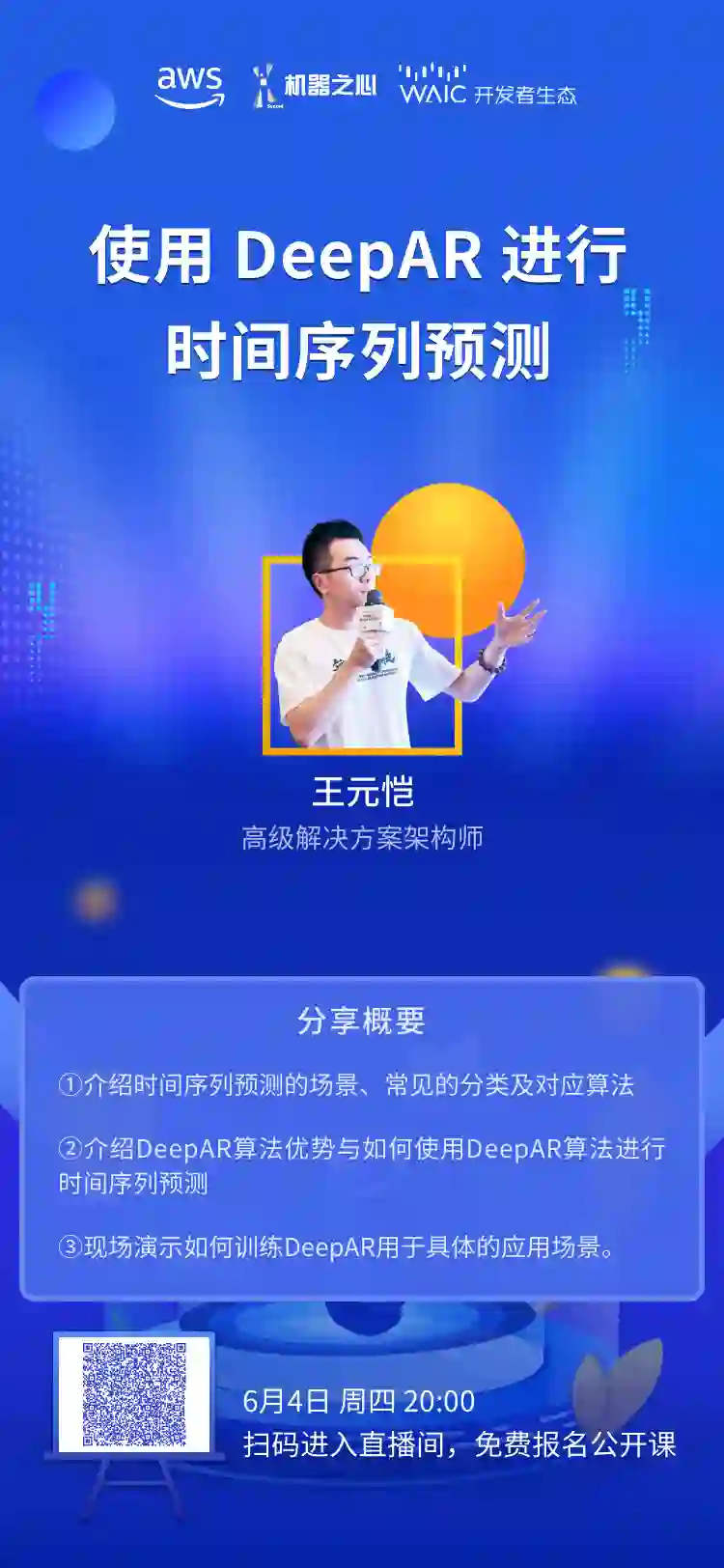 6 月 4 日 20:00,AWS高级解决方案架构师王元恺将带来第 4 课,详解如何使用 DeepAR 进行时间序列预测。