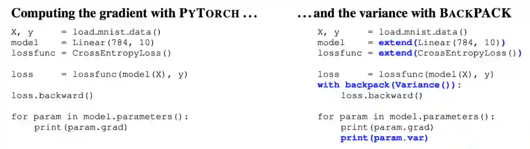 在 ICLR 2020 的一篇 Oral 论文中(满分 8/8/8),图宾根大学的研究者表示,目前深度学习框架中的自动微分模块只会计算批量数据反传梯度,但批量梯度的方差、海塞矩阵等其它量也很重要,它们可以在计算梯度的过程中快速算出来。