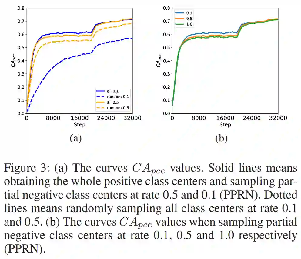文中用两个实验来证明这个假设。在每次实验中,只采样一定百分比的类中心来计算每次迭代中近似的softmax损失: