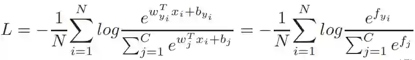 其中, 表示第i个sample,C表示class number,N表示Batch Size, 表示第j个W权重;