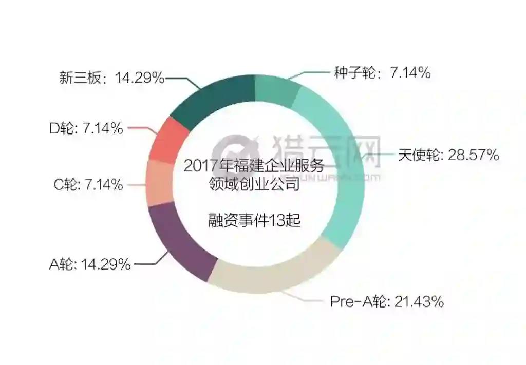 福建企业服务创业者在2017年度的融资表现颇佳。共发生13起融资,金额近5亿。仅17年12月这一个月,共有2起金额破亿的融资事件。人工智能财税领域的唯你网斩获3亿A轮融资。人脸识别领域的瑞为信息获过亿融资。