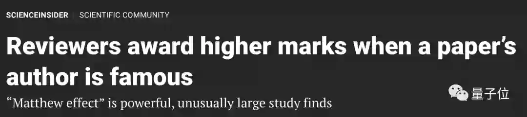 当一篇论文的唯一作者不为人知时,只有10%的审稿人建议接收这篇论文,但当同一篇论文的署名者是诺贝尔奖得主时,59%的审稿人表示赞同。