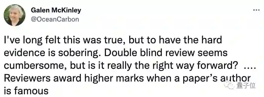 同样的工作不应该因作者不同而受到不同的评价,因为这会让年轻和不知名的研究人员很难在学术过程中迈出第一步。