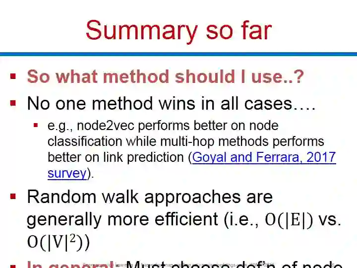 在本教程中,我们将介绍NRL在过去十年中的主要进步,重点是过去两年中取得的新技术。我们将讨论基于矩阵分解的经典方法、基于随机游走的算法(例如,DeepWalk和node2vec ),以及图形神经网络(eg., GCN)的最新进展。我们将介绍单个节点的表示学习方法以及整个(子)图的表示方法。