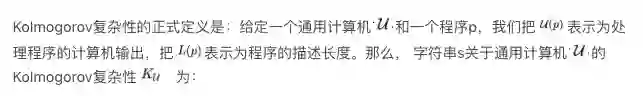Kolmogorov 复杂性依赖于现代计算机的概念来定义对象的算法(描述性)复杂性:描述对象的最短二进制计算机程序的长度。继 MDL 之后,计算机本质上是最通用的数据解压器形式。