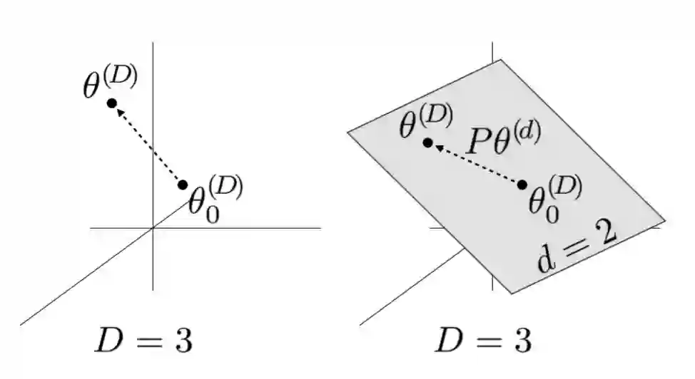 假设模型有 D 个维度,并且其参数表示为 。为了学习,随机采样了一个更小的 d 维度子空间