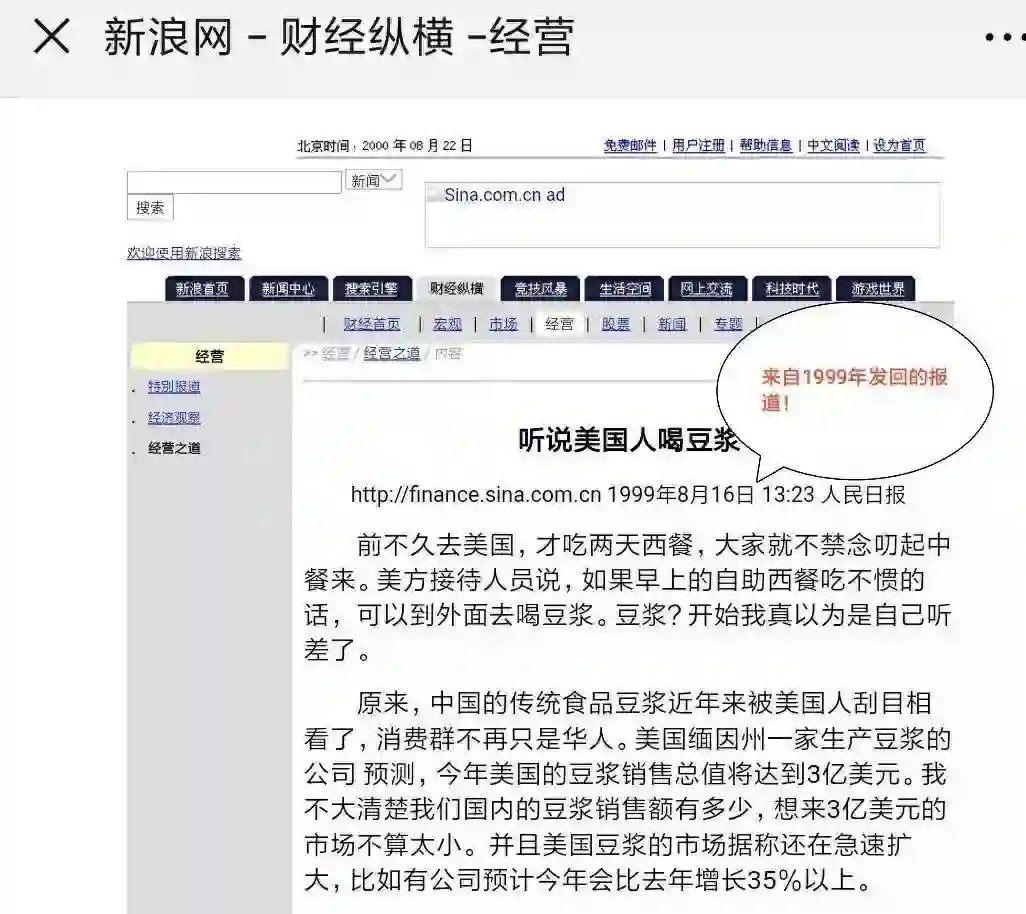 同样,放眼到今天海外市场,很多美国人甚至还没有喝过中国豆浆,这就是机会。