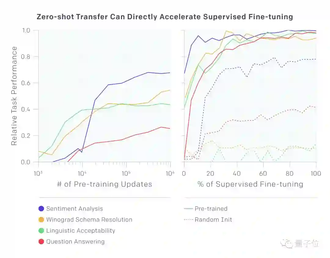 这种方法延续了我们之前的情绪神经元研究。此处,我们希望能对这种想法做进一步探索:我们是否而能够开发一个模型,在大规模数据下以非监督的方法对其进行训练,然后对其调参,使其能在多种不同任务上获得好的表现?