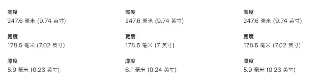 机身尺寸方面,长宽三款机子都相同,可是高度方面iPad Air4略高了0.2mm。