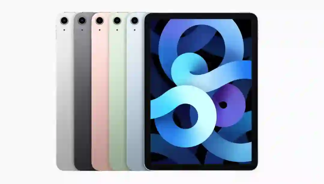 其中,新款的iPad Air 4更新了外观设计,采用 10.9 英寸的 Liquid Retina 屏幕,全面屏设计。分辨率为 2360 x 1640。将 Touch ID 首次整合到顶部的电源键上,首发 A14 仿生芯片,采用 USB-C 接口。