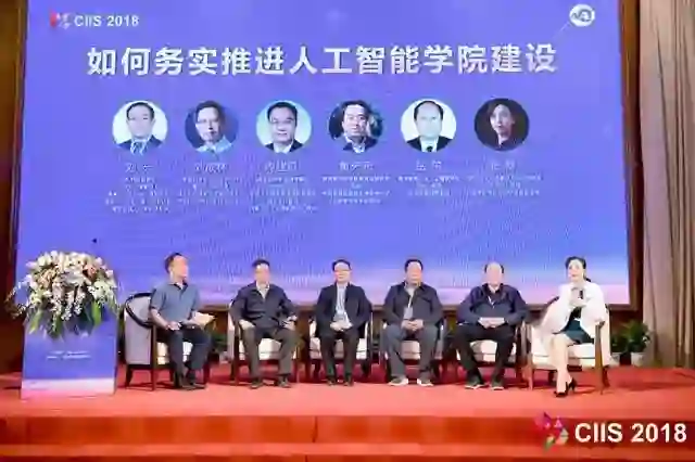 随后,中国人工智能学会副理事长,北京大学教授,国家“万人计划”首批专家刘宏教授主持了主题为“如何务实推进人工智能学院建设”的圆桌对话。圆桌对话嘉宾有中国科学院自动化研究所副所长、研究员、模式识别国家重点实验室主任、IEEE/IAPR/CAAI Fellow刘成林教授,国家语委中国语言智能研究中心主任、中国人工智能学会语言智能专业委员会主任、首都师范大学原副校长、周建设教授,教育部中央电化教育馆研究部主任,中国教育信息技术协会中小学专业委员会主任委员黃天元教授,南京邮电大学人工智能学院院长、长江学者岳东教授,四川大学人工智能学科方向建设负责人、国家优秀青年科学基金获得者张蕾教授。几位专家深入探讨和分享了人工智能学院在教育前线落地实施的最佳实践。