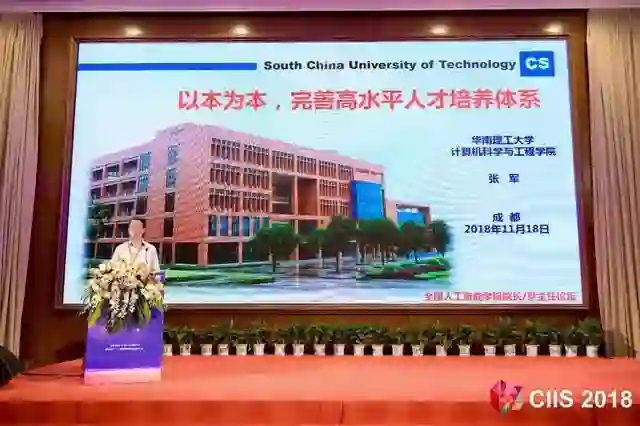 华南理工大学计算机科学与工程学院院长、教授、长江学者特聘教授、国家杰出青年科学基金获得者、IEEE/CAAI Fellow张军教授通过题为《华南理工大学计算机专业学生培养与成长》的报告中谈谈到人工智能在教学管理实践中的培养模式与培养方案。包括以学生发展为中心,聚焦本科教育;以整建制本科实习,全程反馈培养,利用实践回归教学知识体系;培育全过程有导师参与,进行严格的科研训练;同时提供全英教学出国访学机会,提升学生的国际视野;并在党的创新精神引领下,促进学生全面成长。