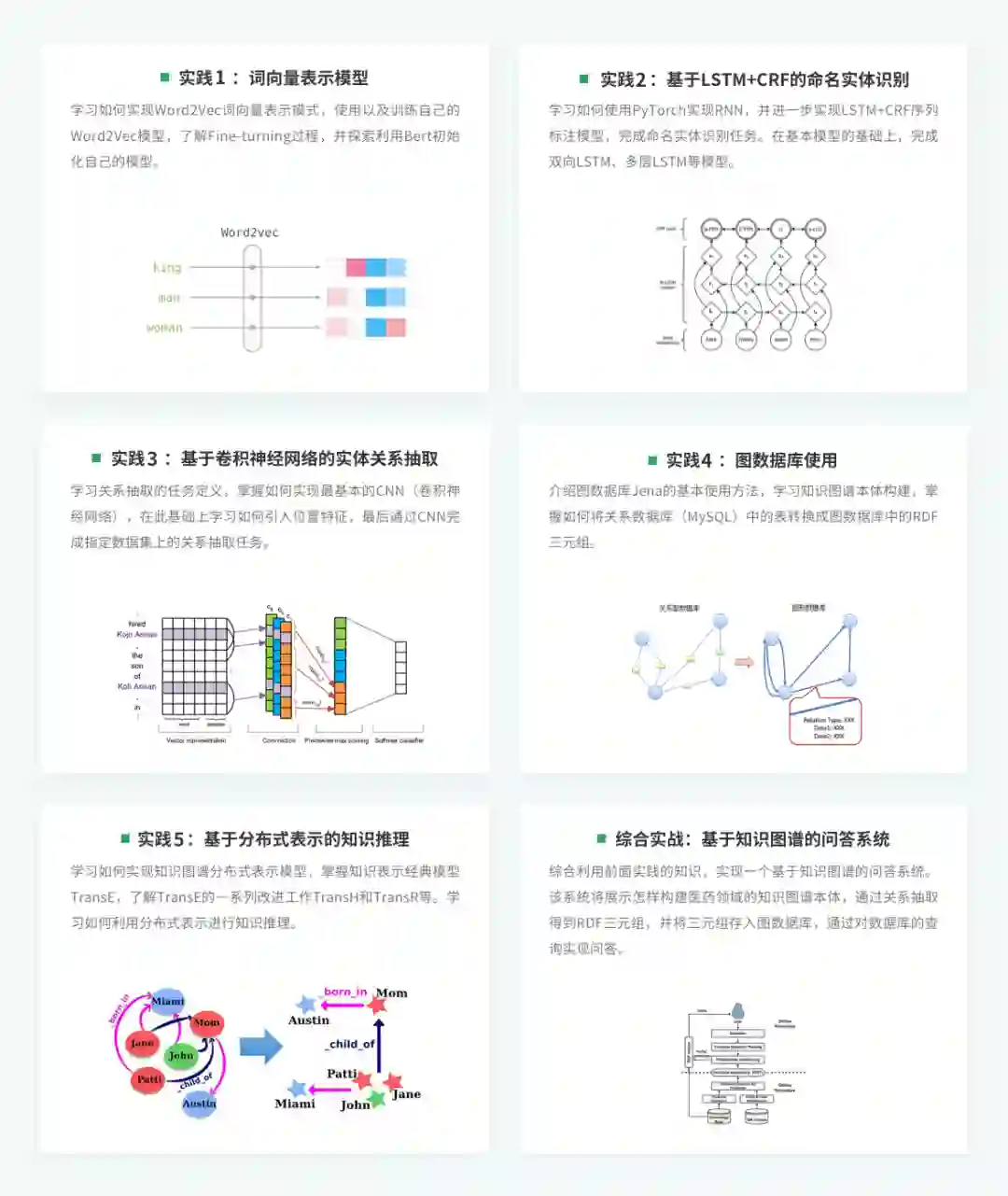 课程细致讲解理论的同时,结合知识图谱各个阶段的核心技术通过实践项目,帮助大家对知识图谱有更广泛的认识。
