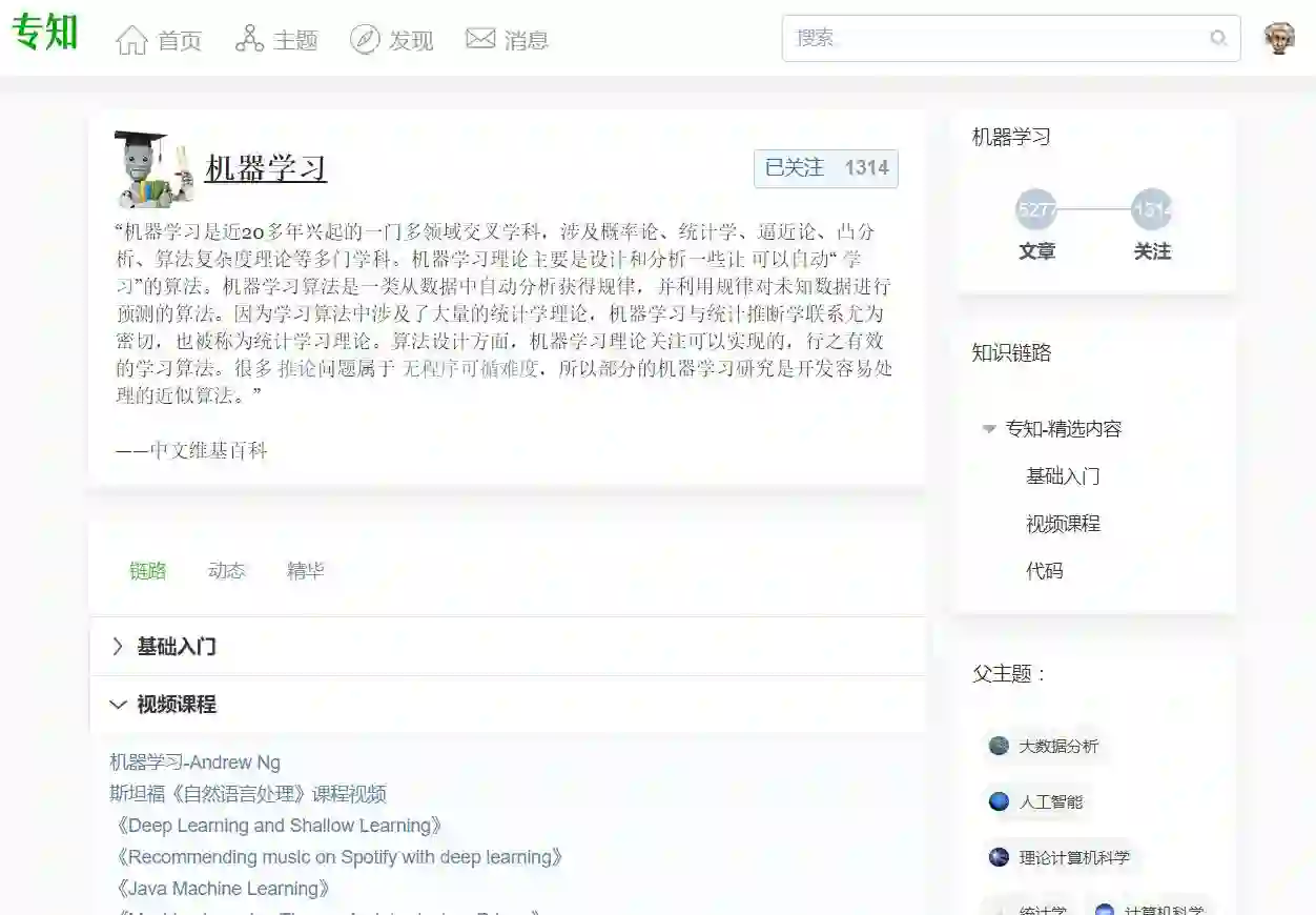 更多人工智能知识资料请访问,专知,为人工智能从业者提供专业可信的AI知识分发服务;请登录www.zhuanzhi.ai或者点击阅读原文,顶端搜索“深度学习”或者“机器学习” 主题,直接获取查看获得关于机器学习和深度学习更多的知识资料,包括链路荟萃动态资讯精华文章等资料,帮助你更好获取机器学习深度学习知识!如下图所示。