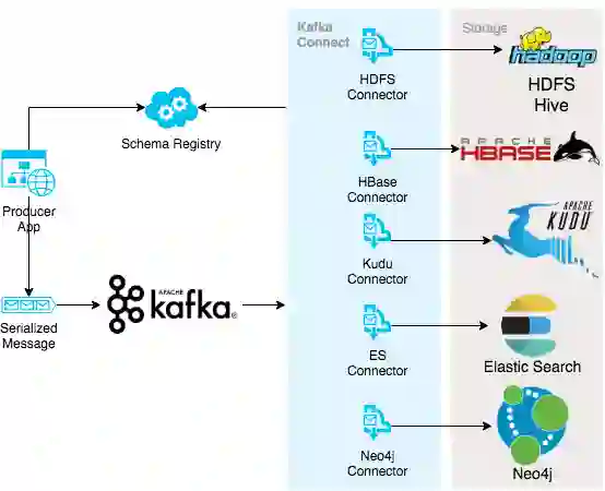 对 Kafka 的集群进行拆分之后,服务的稳定性得到了保障。我们团队的主要工作方向慢慢向帮助技术人员提效和降低大数据技术使用门槛发展。一方面,跨业务消息传递无强制格式要求,业务方通常使用 Json 类型字符串,虽然 Json 使用灵活,但是如果业务产生变更,业务上下游的通知不及时,很容易解析异常;偶尔也会有一些误发送其他 topic 的数据或不完整格式的脏数据被发到集群中,也会导致消息解析失败。另一方面,我们也开始规划以 Kafka 为核心链路,向其他存储如:ES / Hadoop ( Hive,HBase ) / KUDU / ClickHouse / NEO4J 等组件同步数据的方案。业务上只需要一次把数据写入 Kafka 中,即可在各个其他需要的组件中使用该数据,降低了其他组件的接入门槛,从传统的安装大数据环境 → 数据导入→ 清洗为列式存储再进行查询,到在业务代码发送数据到 Kafka 后直接通过查询引擎 ( 如 Presto ) 查询,便利地享受大数据带来的红利。结合了跨业务方对数据格式的需求和下游系统大部分需要依赖数据的结构同步,我们引入了 AVRO 的序列化方式。