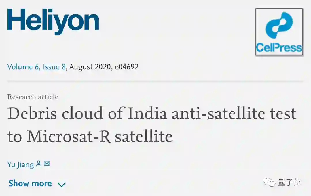 姜宇以这次事件产生的碎片云为研究对象,计算了碎片的体积分布、运动轨迹及二次碰撞的结果,论文发表在综合性跨学科期刊《Heliyon》上。