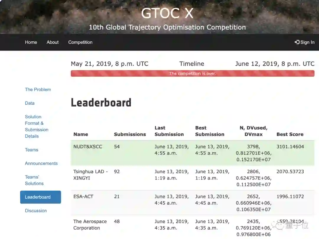 2019年,有“航天界奥林匹克”之称的国际空间轨道设计大赛(GTOCX)第十届开赛,中国队伍首次在该比赛夺冠,打破了欧美的常年垄断。