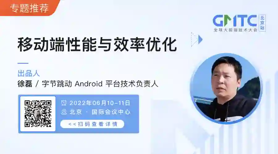 今年 6 月 10 日 -11 日,GMTC 全球大前端技术大会将再一次落地北京。其中「移动端性能与效率优化」专题,邀请到阿里巴巴无线开发专家储龙江(大音)老师现场分享,想了解阿里是如何给亿级用户规模的 App 做线上稳定性监控和客户端运维的?点击底部【阅读原文】查看更多。