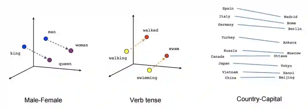 自此,经过模型和训练技巧的双重优化,终于使得大规模语料上的训练成为了现实,更重要的是,得到的这些词向量能够在语义上有非常好的表现,能将语义关系通过向量空间关系表征出来。