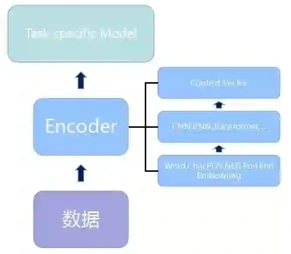 在参考这个报告的同时,回到本文最开头,这里将主要着重于 NLP 中最为重要的 Encoder 模块,并抛去具体的模型之争(诸如 CNN,RNN 和 Transformer 等),想要努力梳理出一条 NLP 任务中如何更有效站上“巨人肩膀”的一些模式出来。